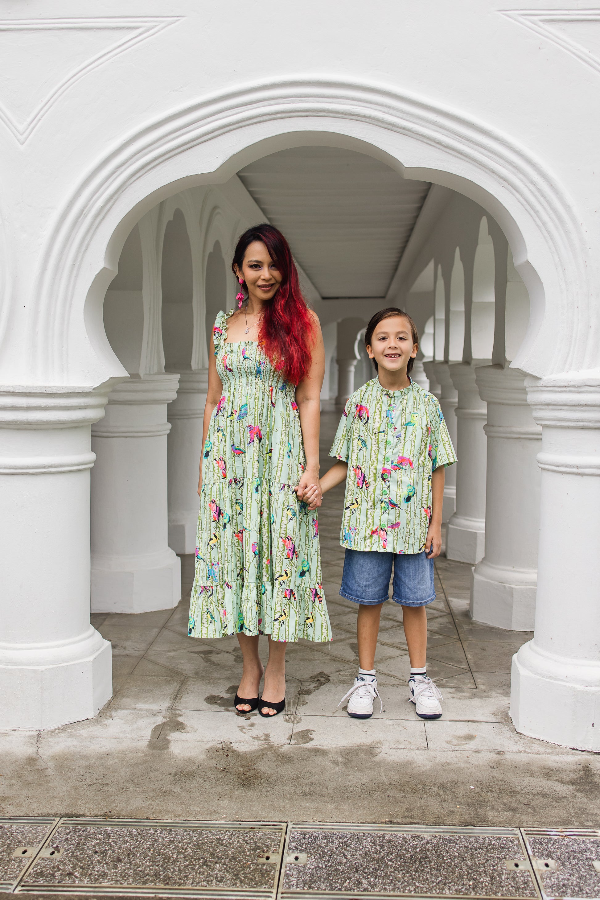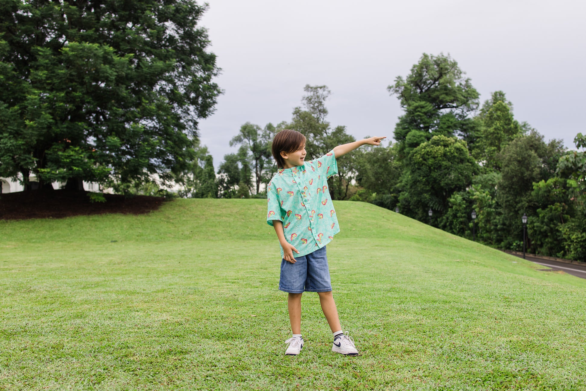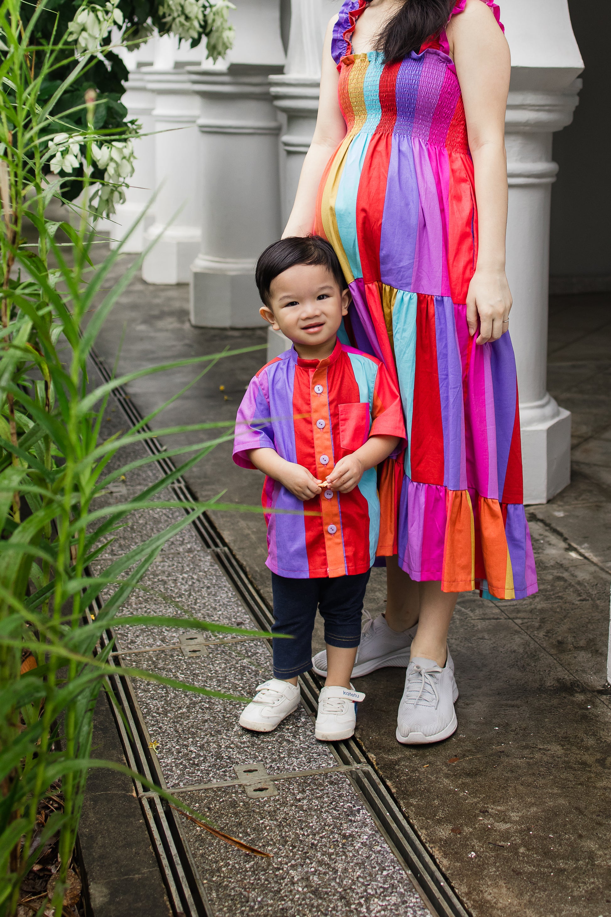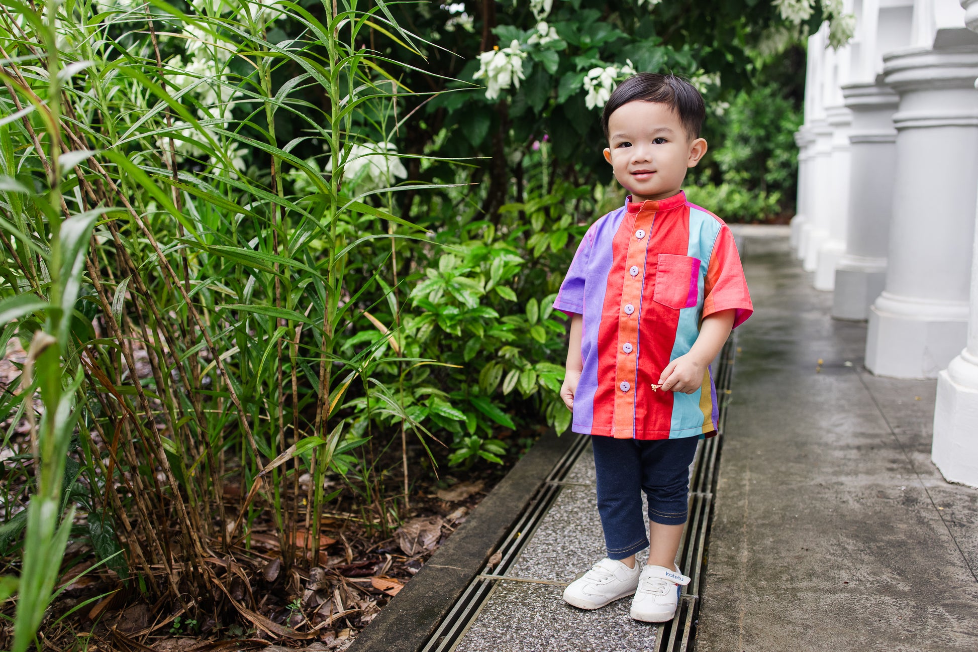 Who doesn't love a button down shit, with a mandarin collar? And these bright, fun fabrics will make them stand out at any occasion and put a smile on their face.