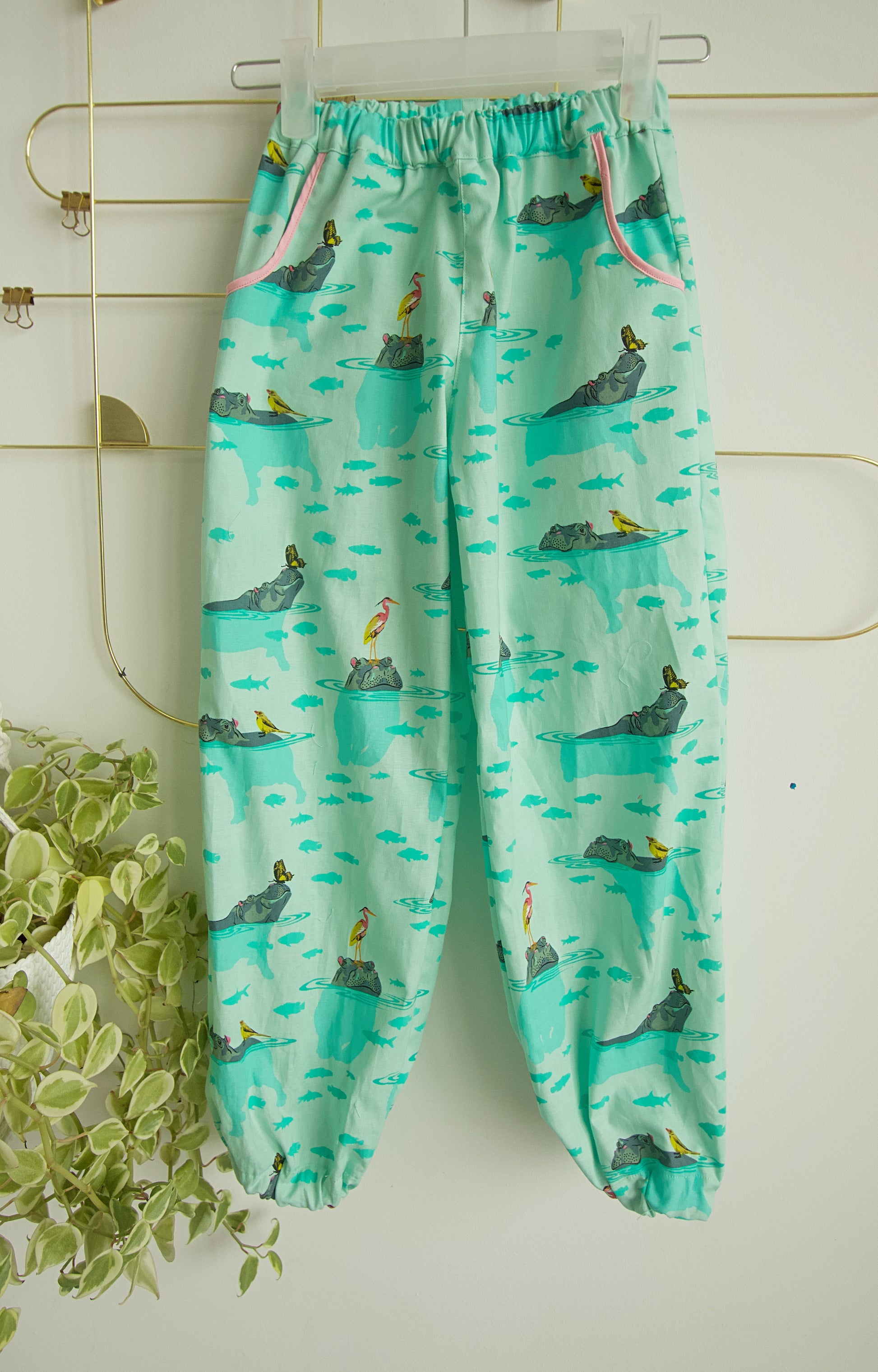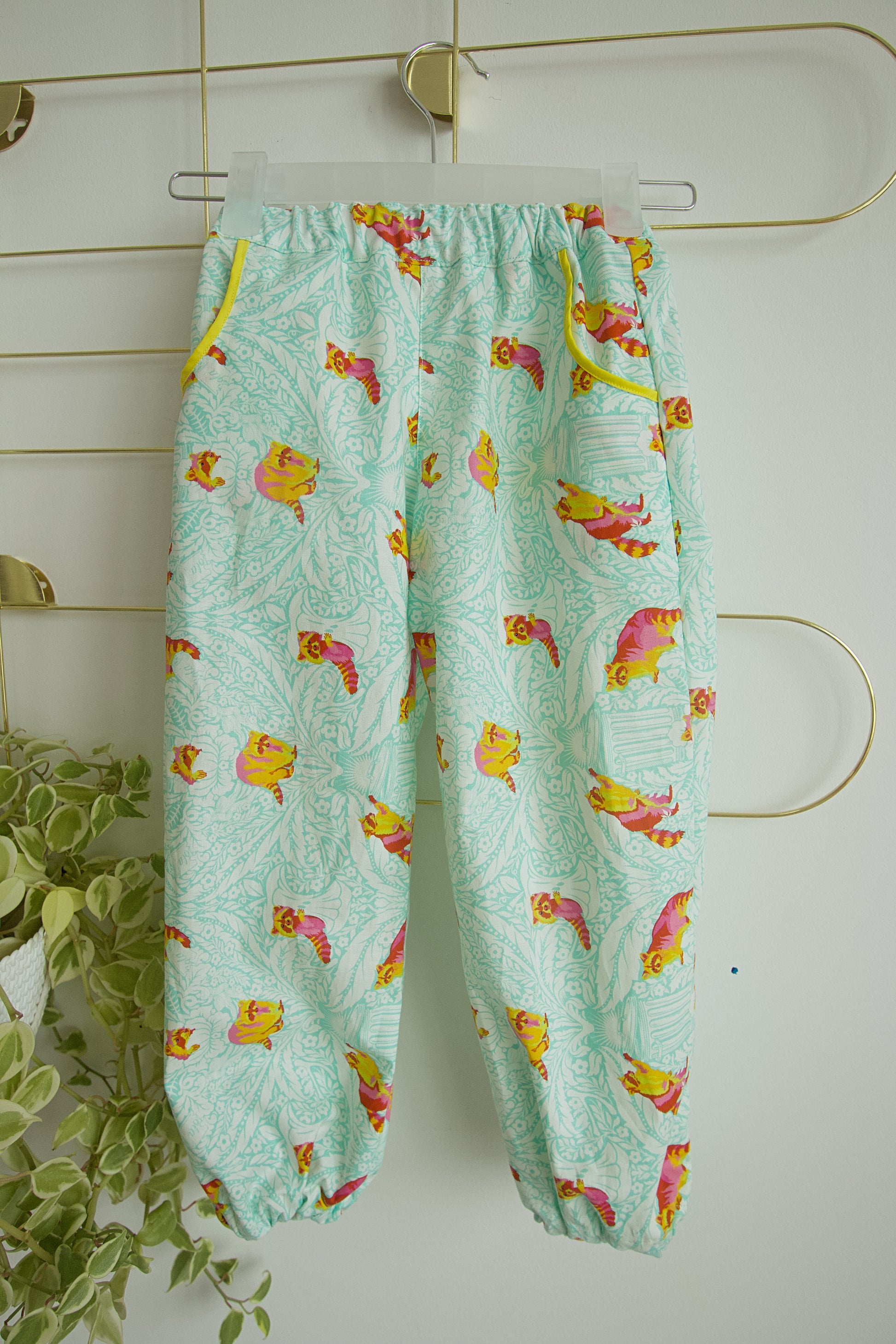 Comfy unisex harem pants! Great for play time. Elastic waist, elastic ankles and (of course) pockets!