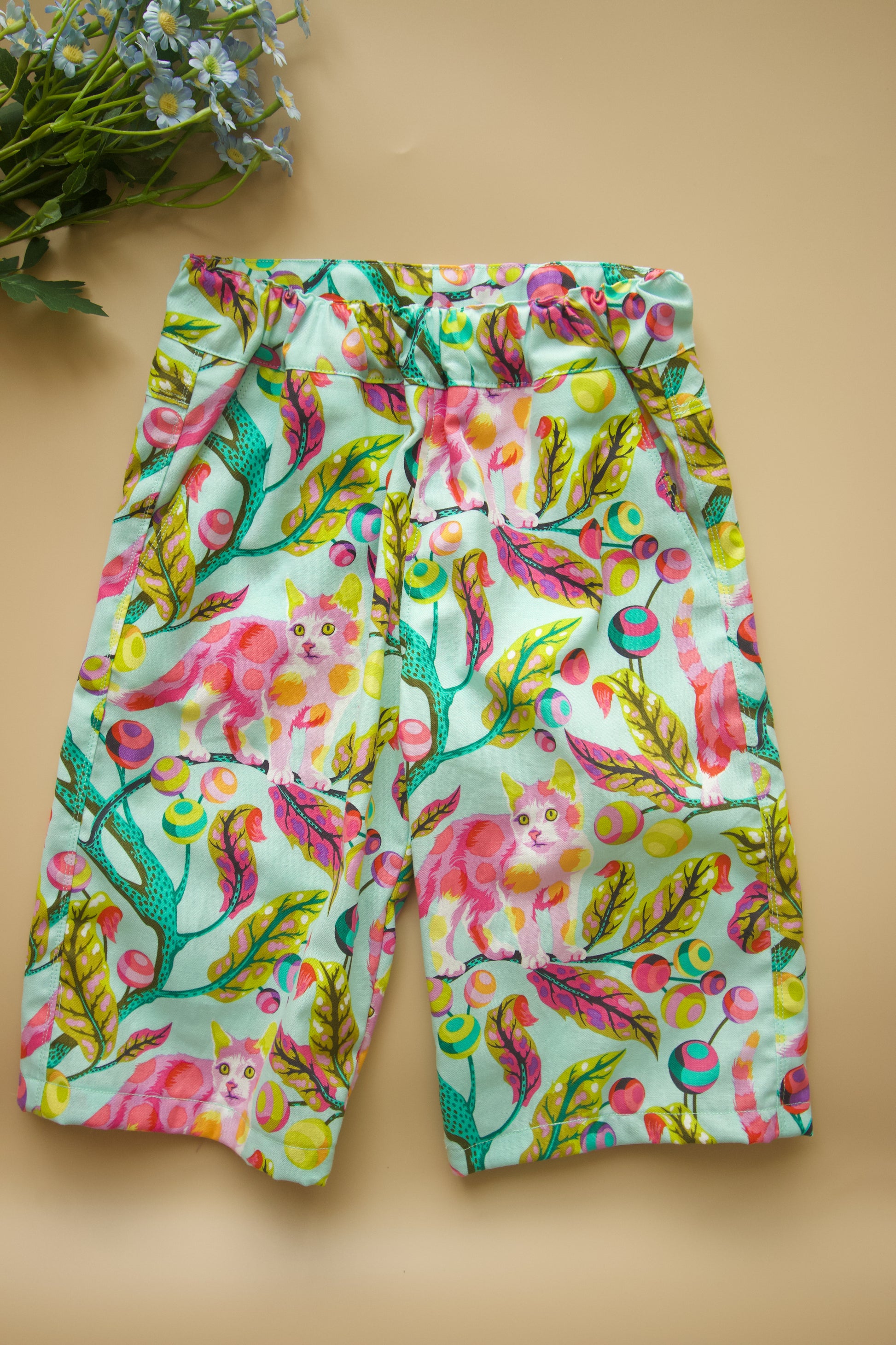 Comfortable unisex shorts in an eye catching fabric for your little one to run around and play in. And of course, it comes with pockets! I've made them a little extra long so they fall below the knee - this means they can be rolled up as a cuff, and then rolled down as they grow! Elastic waist also makes it extra comfortable.